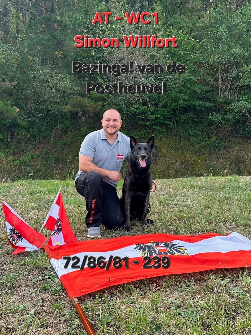Nach dem Sieg bei der WDSF WM in Holland im Mai 2025 sicherte sich unser Vereinsmitglied Simon Willfort mit seinem Bazinga! eine Wildcard für das größte Event im internationalen Gebrauchshundesport: die FCI IGP Weltmeisterschaft, die heuer von 15.-21. September in Vitoria-Gasteiz, Spanien stattfand.